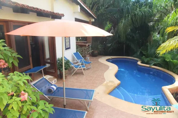 LOCATION, LOCATION, LOCATION!!! – PRICE REDUCED!!! - CASA ESCONDIDA is a gem of an OCEAN VIEW HOME, located just ½ block from the beach at the north end of Sayulita. This one bedroom, one bath home features a classic Mexican design, swimming pool, large pool deck for sunning and hanging out - and is surrounded by lush tropical landscape. CASA ESCONDIDA is situated on a large lot with room to expand if desired. Great rental potential.
